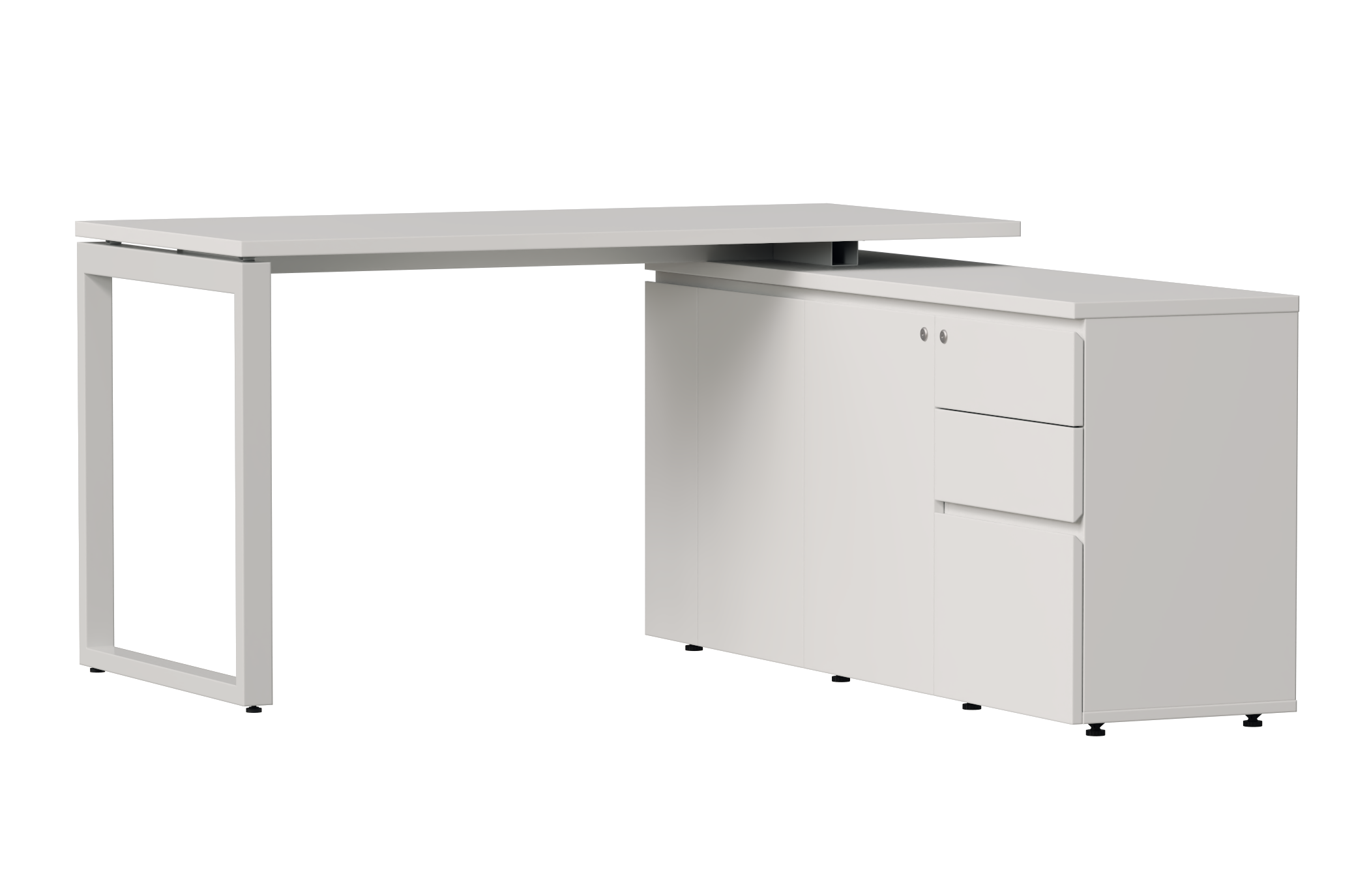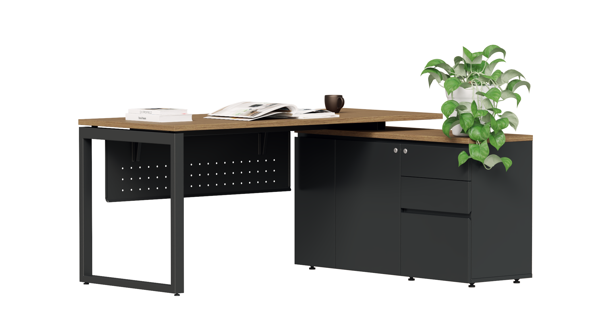 Dáng chân chữ D độc đáo – một trong ba thiết kế chân bàn được ưa chuộng hiện nay, bên cạnh kiểu chân chữ C và chân nghiêng chữ A. Thiết kế chân vuông vức nhưng thanh thoát giúp không gian làm việc luôn gọn gàng và không bị nặng nề về thị giác. Mặt bàn chữ nhật với nhiều tùy chọn kích thước đáp ứng linh hoạt cho các nhu cầu sử dụng: bàn làm việc, bàn họp nhóm nhỏ. Đặc biệt, dáng chân chữ D tạo sự liền mạch khi bố trí bàn đôi hoặc bàn nhóm, và có thể đi kèm vách ngăn trung tâm khi cần tăng sự riêng tư cho từng vị trí ngồi.