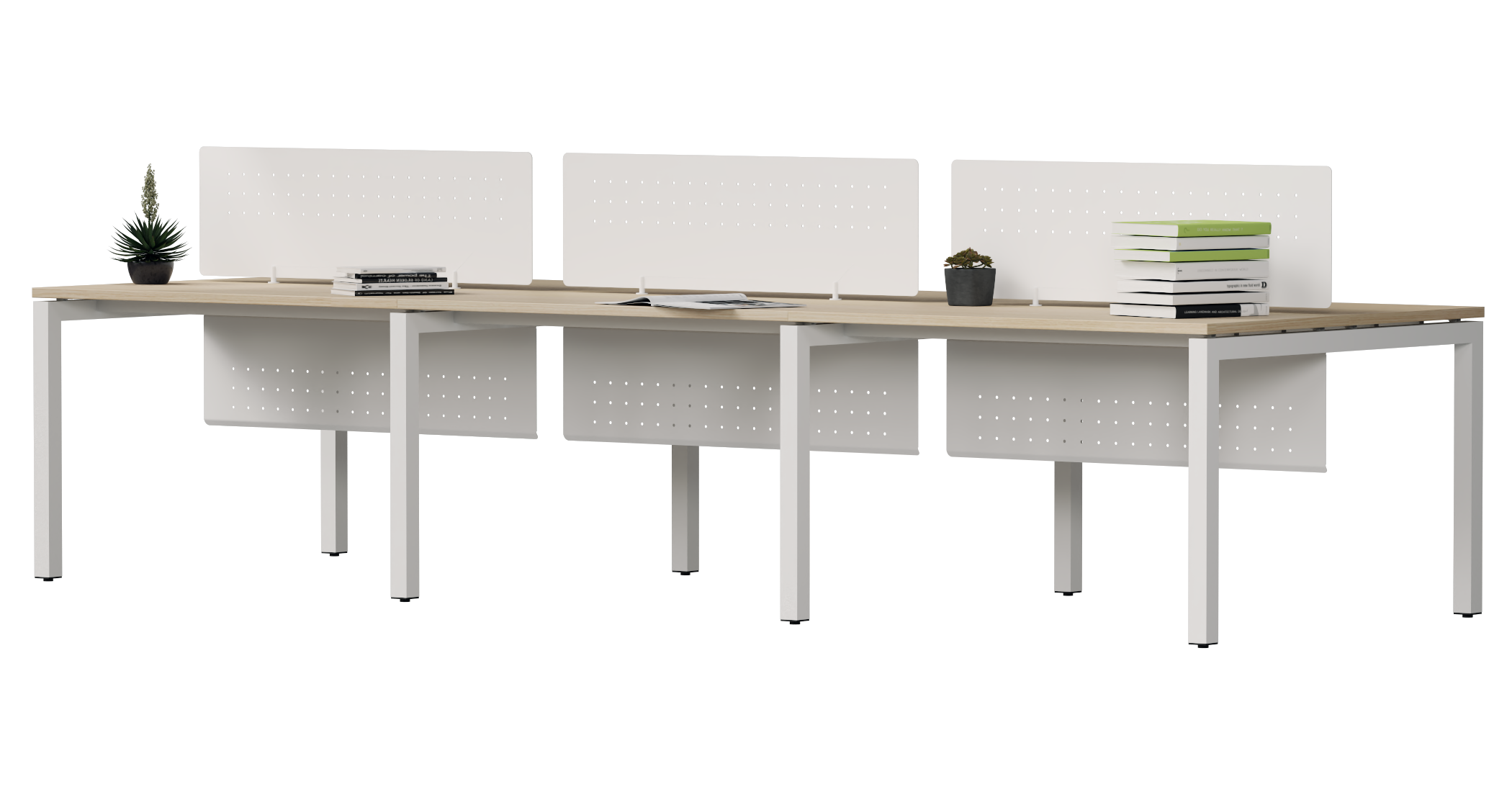 Hệ bàn dãy có 3 kiểu lựa chọn chân giữa bao gồm chân giữa rộng, chân giữa hẹp và chân giữa hẹp có tấm che điện ( Giúp giấu dây điện một cách hoàn hảo nhất), cho sự lựa chọn đa dạng hơn.