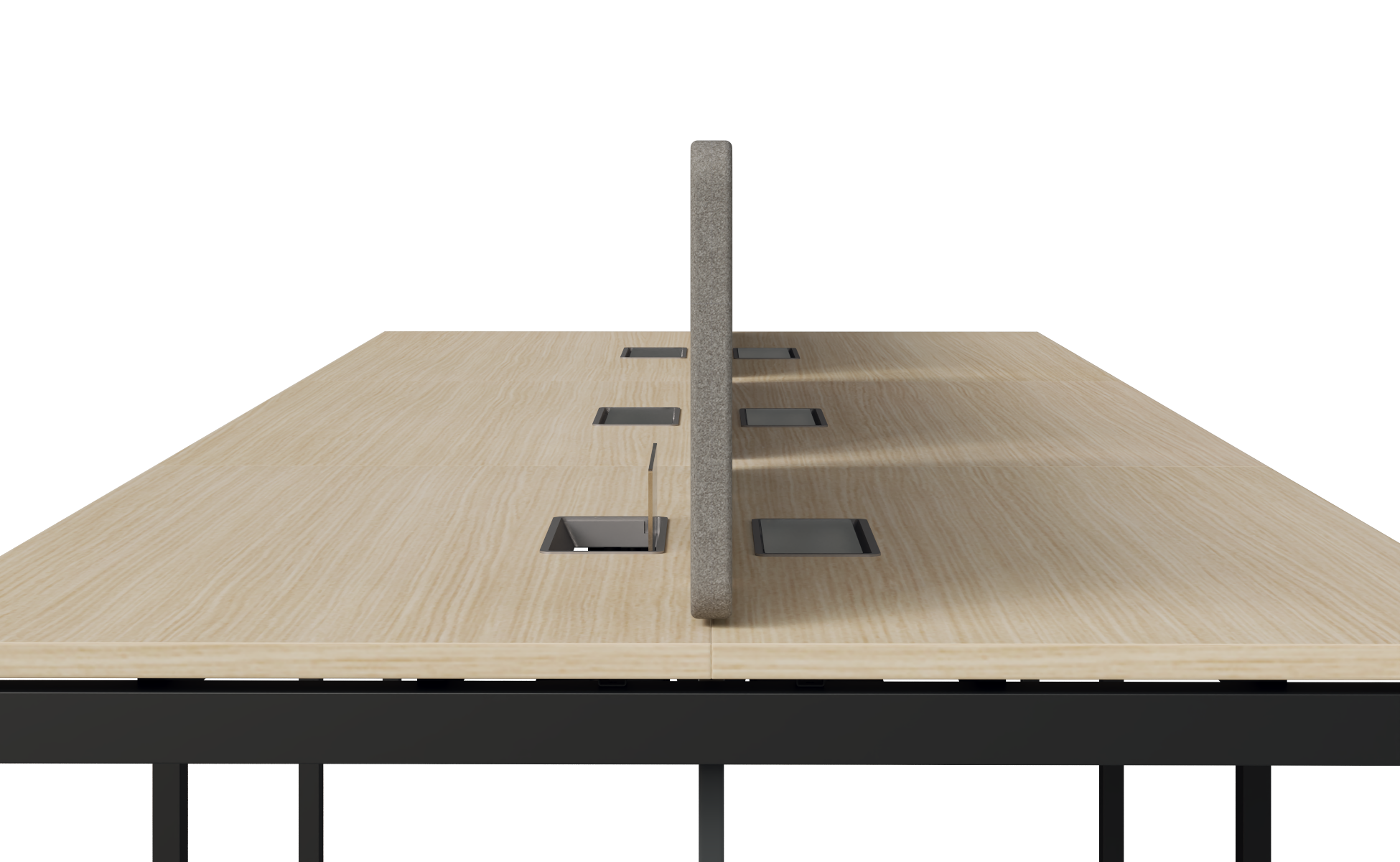 Với thiết kế linh hoạt và thực tiễn, hệ bàn làm việc của t@ble cho phép người dùng dễ dàng chọn vị trí lắp đặt máng điện tùy theo nhu cầu sử dụng thực tế. Khoảng trống kỹ thuật này hỗ trợ tối ưu việc bố trí dây điện, dây mạng một cách gọn gàng.