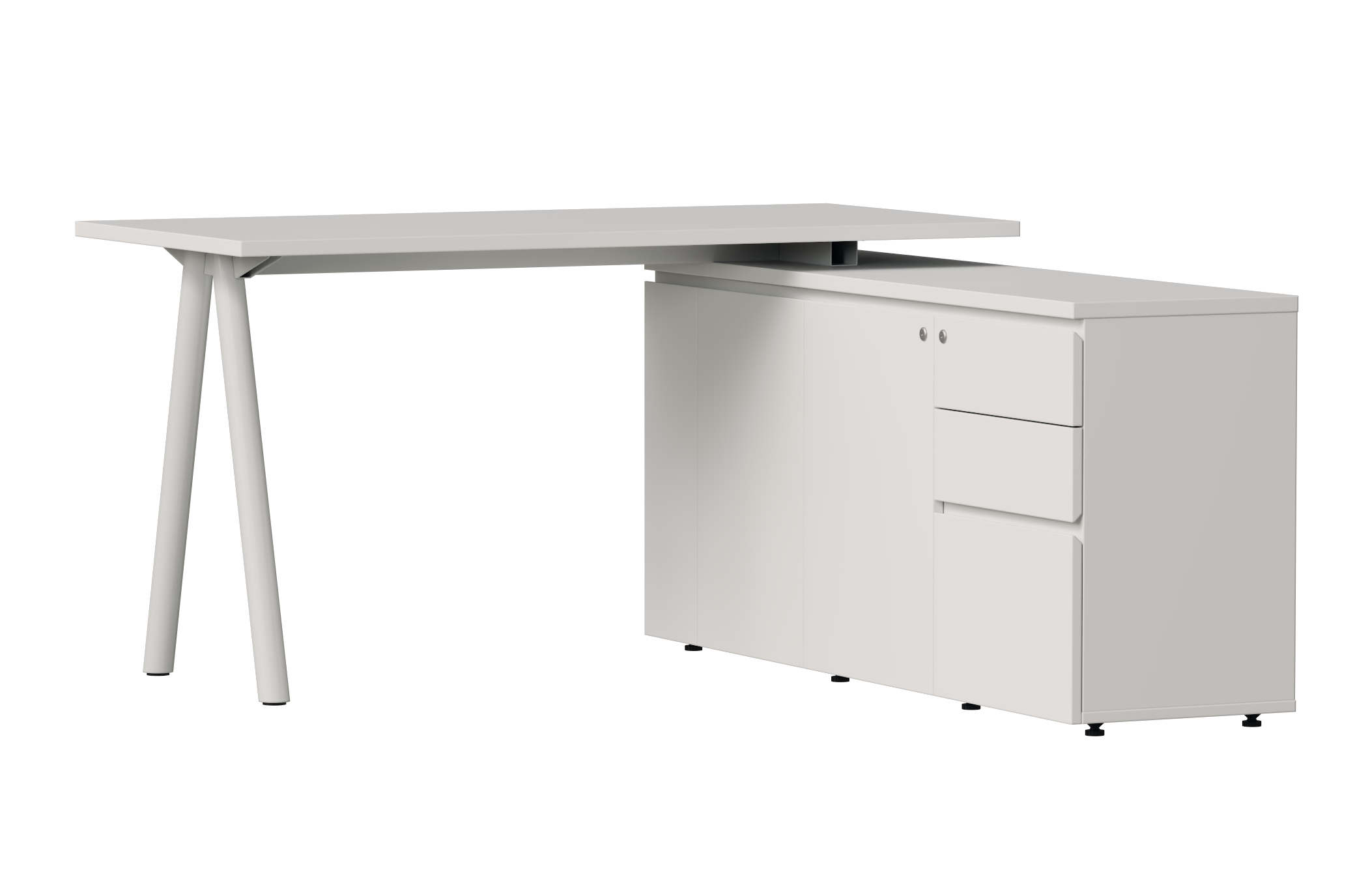 Lấy cảm hứng từ phong cách công nghiệp hiện đại, hệ bàn Factory được thiết kế với dáng chân chữ A từ ống thép tròn, tạo nên vẻ chắc chắn mà vẫn thanh thoát. Điểm nhấn đặc trưng nằm ở kết cấu chân bàn vững chãi, vừa mang tính thẩm mỹ vừa tối ưu công năng sử dụng. Các đường nét đơn giản nhưng mạnh mẽ của Factory dễ dàng kết hợp với nhiều phong cách văn phòng, từ không gian mở sáng tạo đến khu vực làm việc cần sự riêng tư. Đây là lựa chọn lý tưởng cho doanh nghiệp muốn xây dựng môi trường làm việc hiện đại, khuyến khích sự tập trung và làm việc hiệu quả.