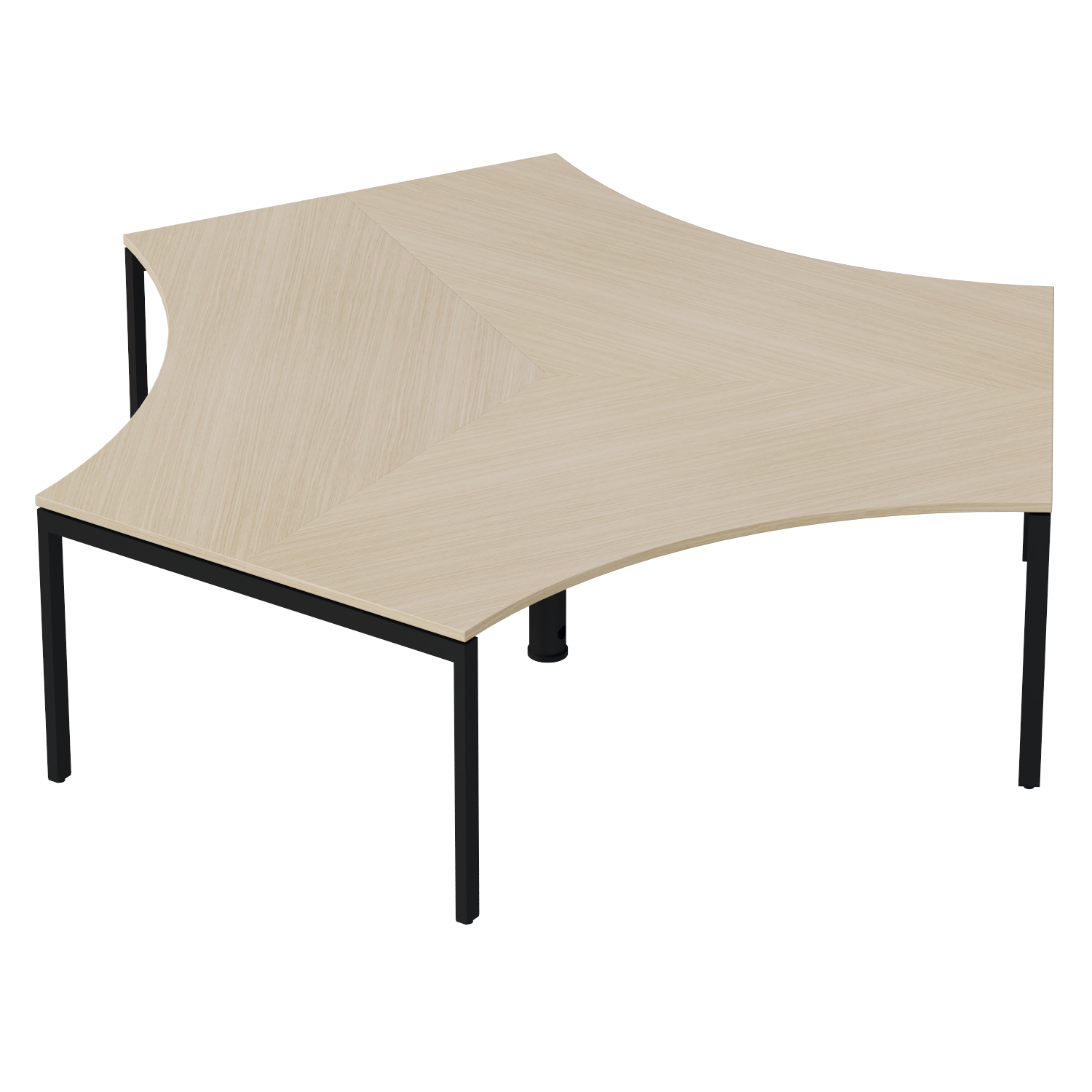 The cluster table with a three-wing design is the ideal solution for a three-person working space. The round cluster design creates a connection between members while ensuring each person has a separate working space.
