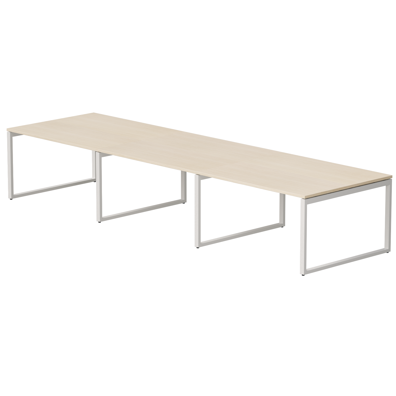 Double row table is designed in clusters of 2-4-6 seats, suitable for open workspaces that require high flexibility. The row layout helps optimize floor space, while creating uniformity and professionalism in the office. The monolithic table structure helps reduce the leg frame system, providing a more open feeling, easy to install according to the number of employees and purposes of use. This is an ideal solution for team working groups such as operations, marketing, design, where connectivity is emphasized but still ensures a separate working area for each individual.