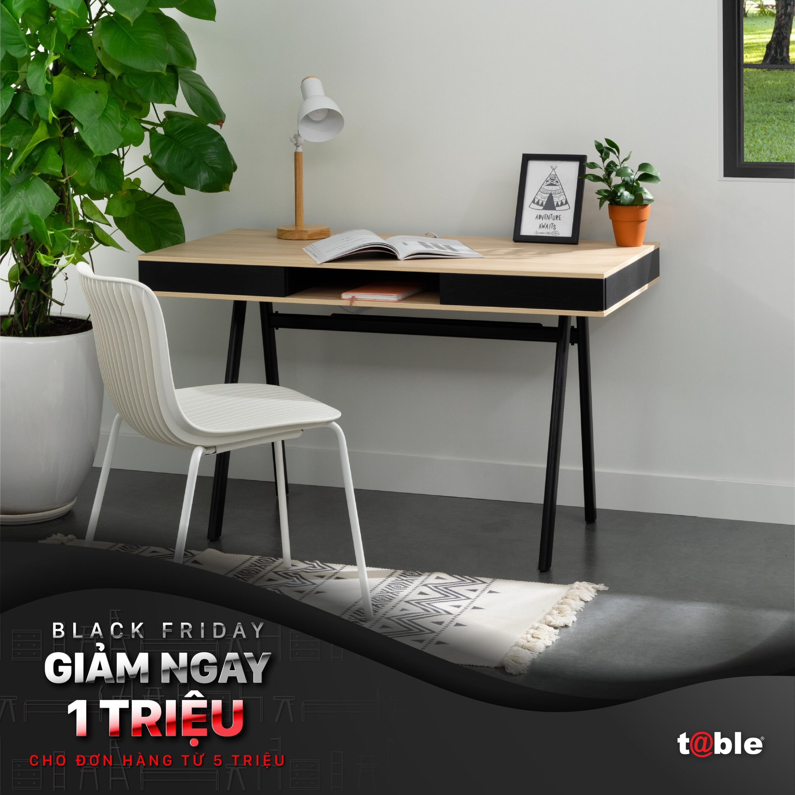 During 3 days November 27, 28, 29, t@ble gives immediately 1,000,000 VND for each order from 5,000,000 VND. Applied to SOHO work desk and decorative shelf collection.