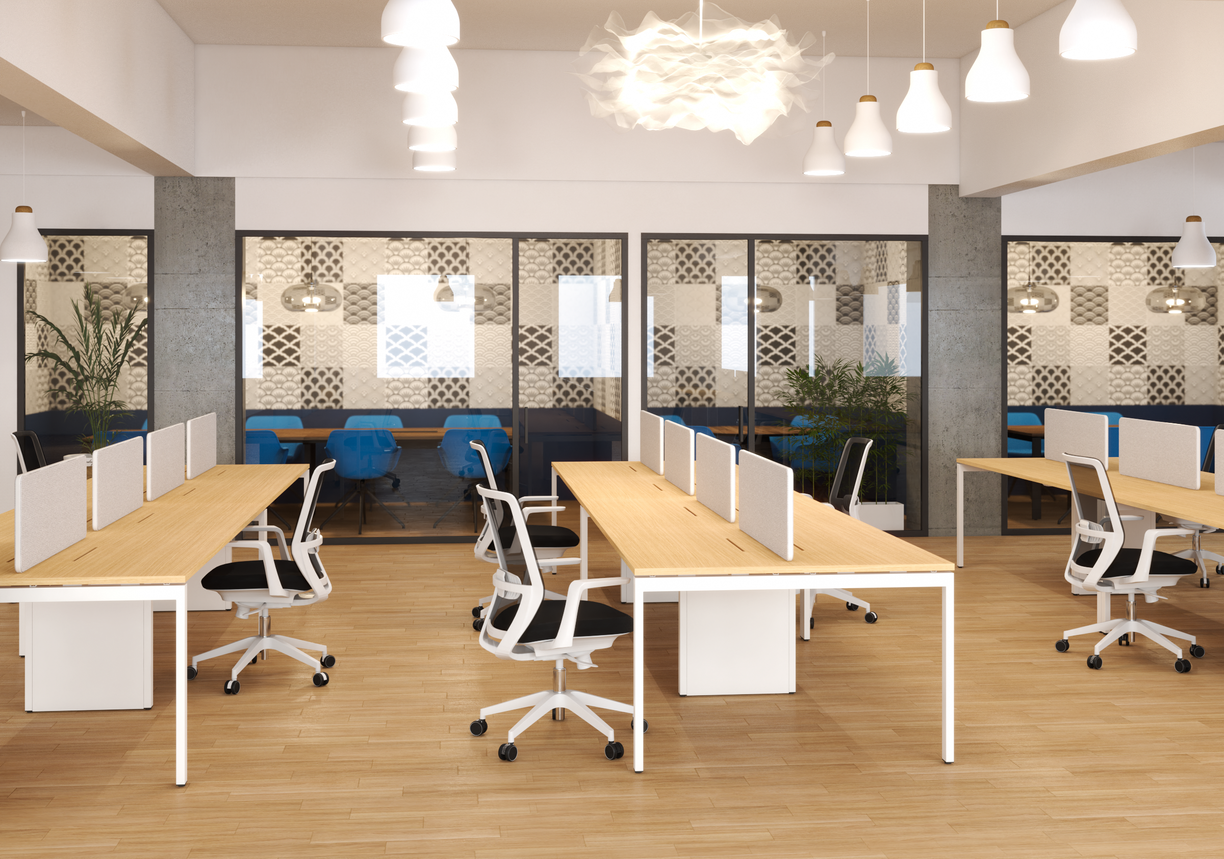 Workstation desks are commonly used for shared workspaces and open spaces. Workstation are designed to reduce the number of leg frames, making the overall space lighter and more streamlined.