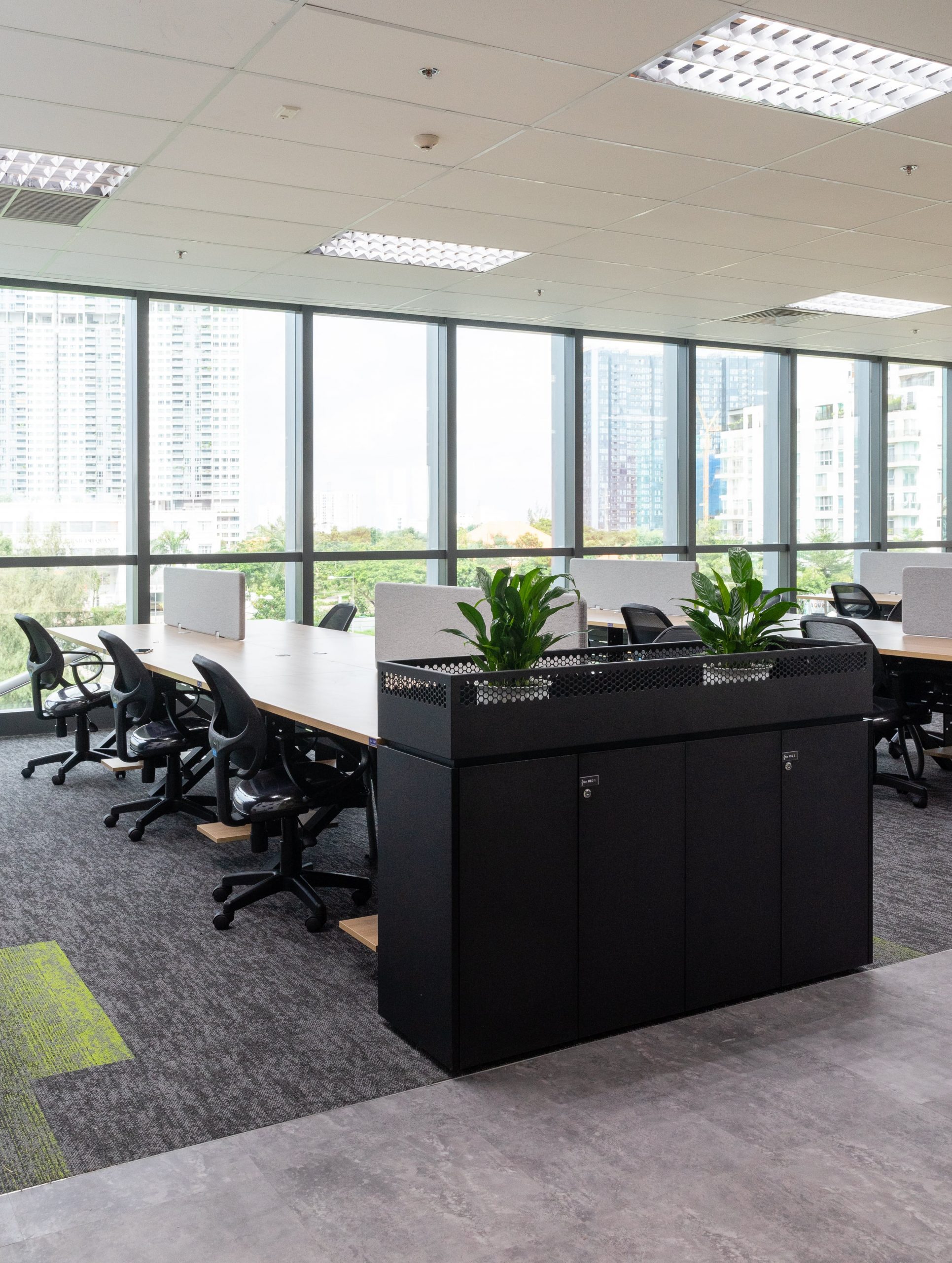 Open workspace creates a comfortable feeling for employees, without constraints. People can easily interact with each other when working, employees can easily gather at any employee's desk to discuss and have group meetings.