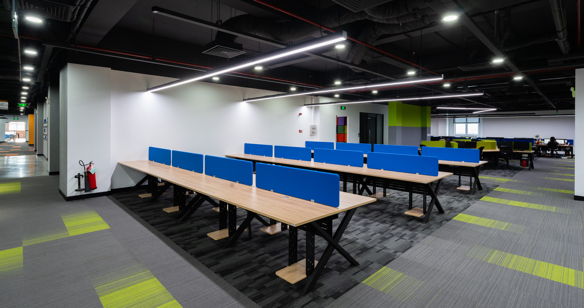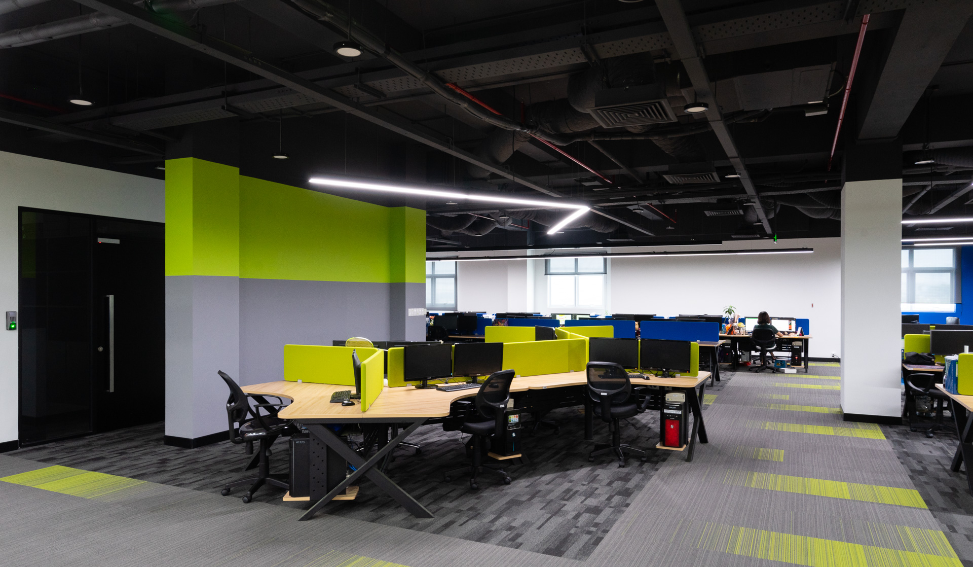Open workspace creates a comfortable feeling for employees, without constraints. People can easily interact with each other when working, employees can easily gather at any employee's desk to discuss and have group meetings.