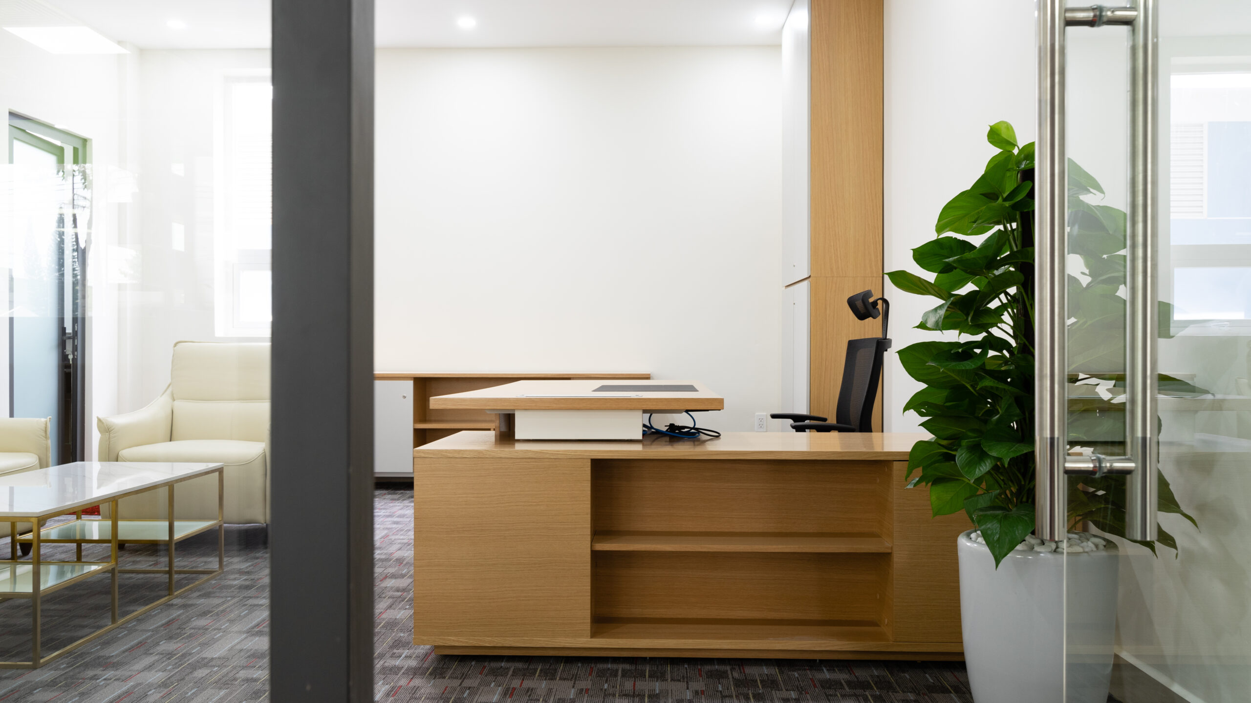 The director's office is a place requiring special attention in furniture selection because this is where the company's professionalism, authority, and position are expressed. Besides choosing luxurious designs, high-quality materials need to be selected. Plywood material can replace ordinary MFC board materials. Choosing premium materials also increases the luxury of the room space.