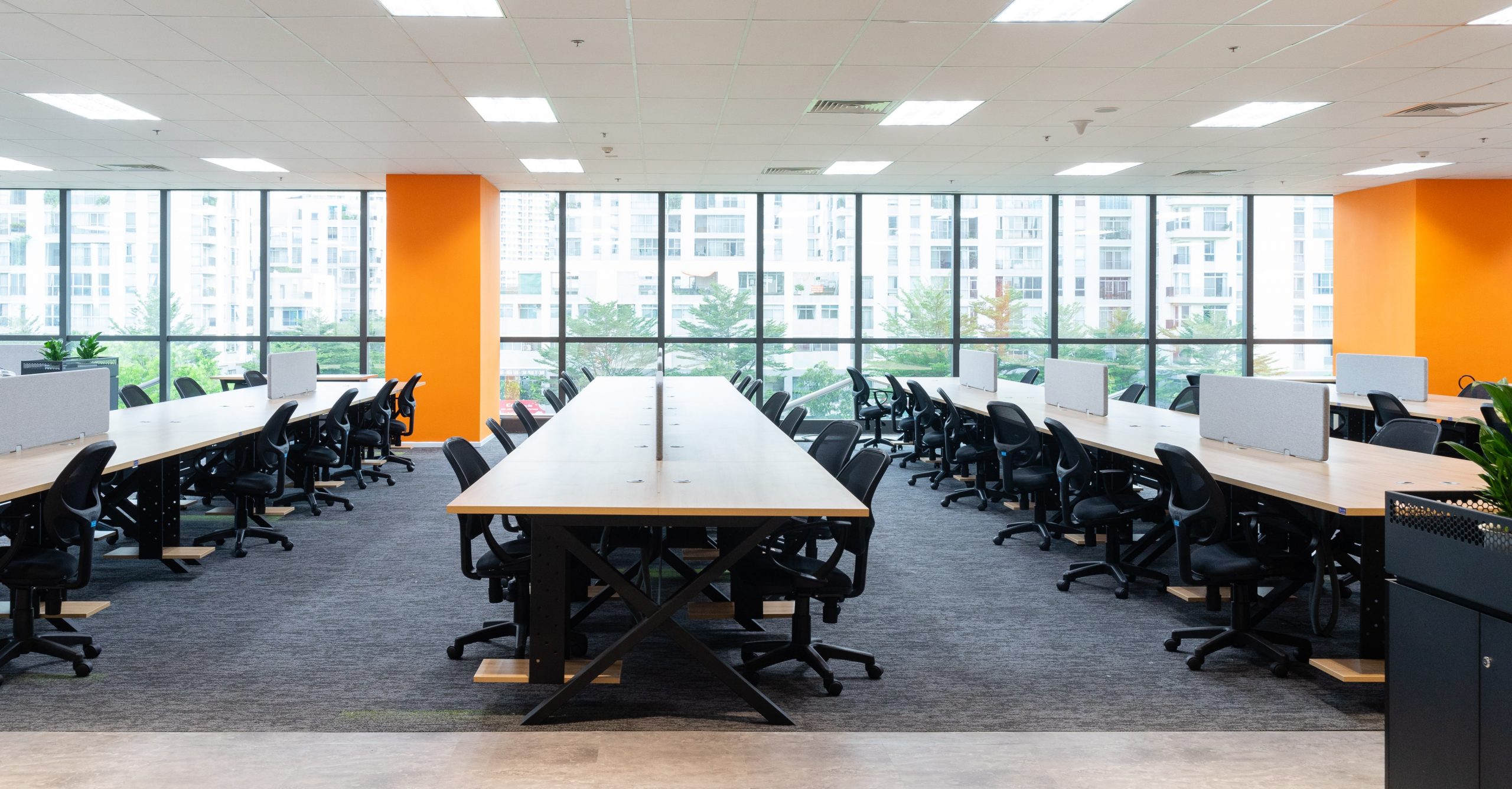 Ngày nay với xu hướng văn phòng mở, khu làm việc chung bao gồm nhiều phòng ban, cụm nhóm làm việc. Sử dụng bàn dãy, bàn cụm cho thiết kế văn phòng chính là giải pháp phân chia nhóm làm việc hiệu quả. Vừa mang tính thẩm mỹ cao bởi sự tinh giản khung chân, giúp không gian trở nên nhẹ nhàng hơn, vừa dễ dàng trong việc phân chia nhóm làm việc mà vẫn đảm bảo sự thông thoáng của tổng thể văn phòng.